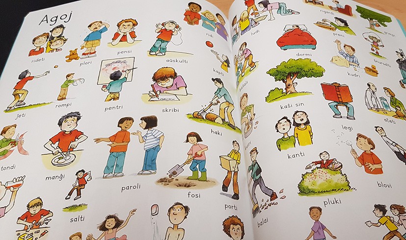 "First thousand words in Esperanto". Written by Heather Amery. Illustrated by Stephen Cartwright. Translated by Edmund Grimley Evans
