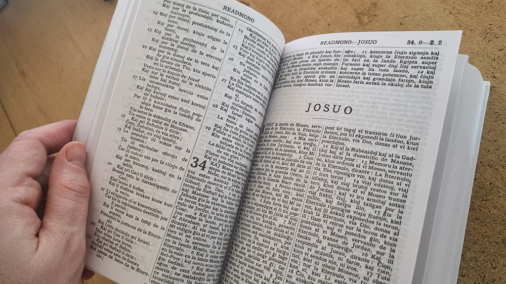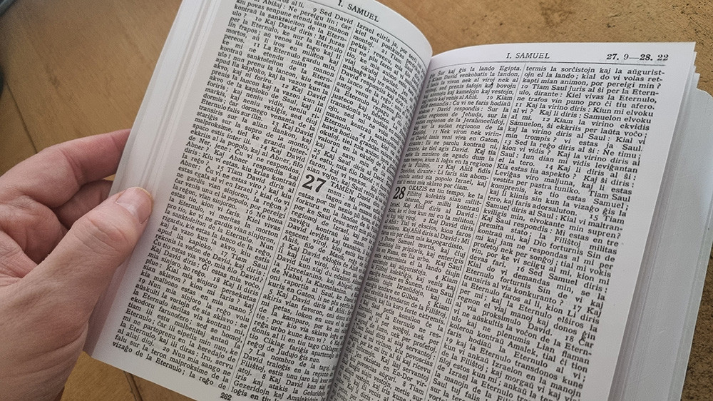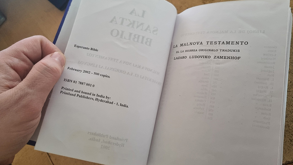 The Holy Bible, comprising both the Old and New Testaments. The Old Testament was translated by Zamenhof from the Hebrew original, with a committee of British pastors later translating the New Testament.