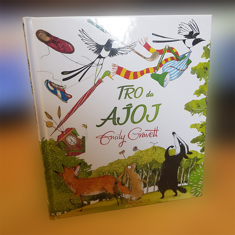Emily Gravett wrote and illustrated this beautiful hardcover book. Hans Becklin translated it into Esperanto.
